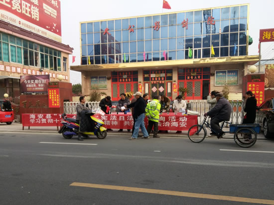 大公镇开展国家宪法日法律咨询活动 来源: 发布时间:2017-12-04 00:00:00 浏览次数: 次 【字体:小 大】 党的十九大强调,加强宪法实施和监督,维护宪法权威,加大全民普法力度,建设社会主义法治文化。 12月4日,第4个国家宪法日到来之际,大公镇司法所会同综治办、团委、工会、计生办、妇联、 派出所、国土所、社区教育中心在镇影剧院前开展法律咨询活动。 此次活动以“学习贯彻十九大,弘扬宪法精神,共筑共享法治海安”为主题,旨在在全社会营造尊法学法守法用法浓厚氛围。 分享到: 【打印正文】