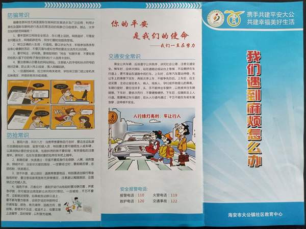 活动中,大公镇社区教育中心全体教师来到农贸市场发放宣传画册近百份。画册内容包括防盗防抢防骗常识、交通燃气安全知识等,图文并茂,通俗易懂。