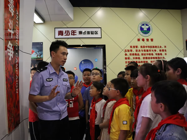 “截止2018年底,全国吸毒人员有240.4万名,其中青少年占60%。”民警告诉学生们,毒品就在身边,禁毒形势依然严峻。