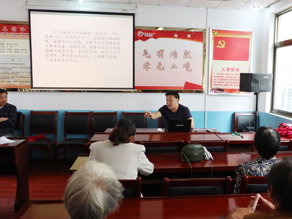 本次课程由社区教育中心涂有军老师执教。他从海安美食:中洋河豚、李堡麻虾酱、沙岗猪头肉、雅周烧饼等入手,讲到了不良饮食习惯对身体的危害,以及健康饮食注意事项等方面的知识。课程内容丰富,课堂秩序井然。