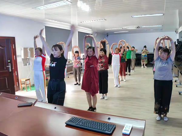 培训课上,指导老师首先就第六套“佳木斯快乐舞步健身操”的相关内容作了简单的介绍,随后开始授课,针对健身操的每一个动作要点,边解说,边示范,并为个别学员进行悉心指导。学员们热情高涨、学习认真、领会到位,一举手、一抬足都尽量做到规范整齐,在音乐的伴奏下,大家精神饱满、踏歌起舞。