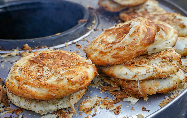 雅周烧饼因保持了香脆两面黄,外撒芝麻内擦酥,萝卜丝油渣包其中这一传统,风味独特,浓香扑鼻,酥脆可口而倍受众人喜欢。