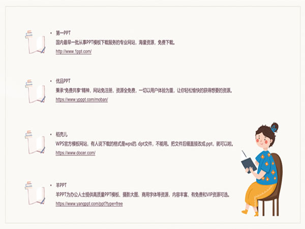 接下来主持人为大家推荐了几个像第一PPT、优品PPT、羊PPT、稻壳儿等不错的PPT模板网站,内容丰富、免费漂亮。