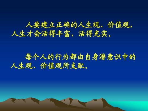正确的人生观和价值观也许并没有一个完全统一的标准,但做到上述五点,就可以成为一个兼有自我价值和社会价值的人。我们不一定会因此而富有,但我们的生命会因此而充实。