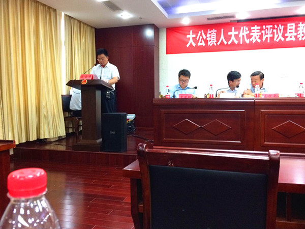 会议由镇党委副书记、镇长杨国来主持。镇人大主席贲道明就今年的人大评议教育(体育)工作作了全面动员和部署,对评议重点工作予以了强化。县教育局副局长张永强对全县教育(体育)局近三年来的工作情况进行了介绍并就迎评工作进行表态,镇教育助理周祥报告了三年来大公镇教育教学工作情况并就接受代表评议作了表态发言。镇党委书记刘成亮从 “三个有利于”“六个切实”层面,阐述了评议工作须做到思想重视、强化领导、确保实效。县人大常委会主任周宗泉从习总书记“7·26”重要讲话中“期盼有更好的教育”入手,以“为什么评”“评什么”为重点,做到强化组织领导,强化调查研究、强化集中评议,强化整改落实,切实推进教现代化,满足人民群众需求。县水利局副局长邓琴汇报了整改工作情况,播放了整改情况专题片,并接受了人大代表的现场满意度测评。最后,由大公镇中心幼儿园园长戴小红向全体与会人员宣讲了相关的教育法律法规。