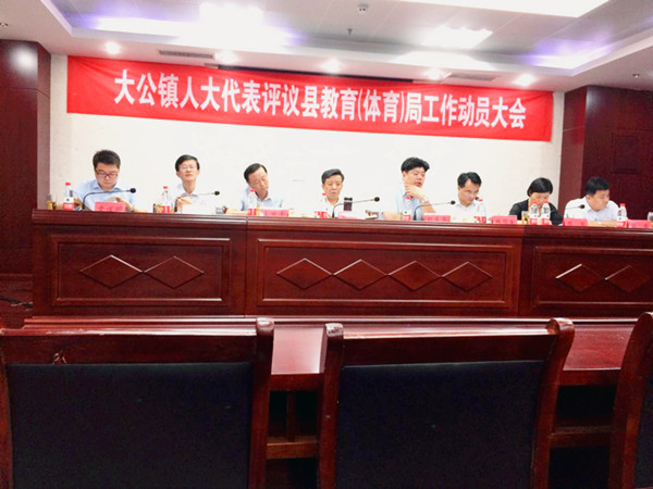 9月11日下午,大公镇在鹏飞集团三楼会议室召开人大代表评议县教育(体育)局工作动员大会,驻镇县人大代表、镇人大代表、镇教管办全体工作人员及所有校园长共120余人参加了会议。